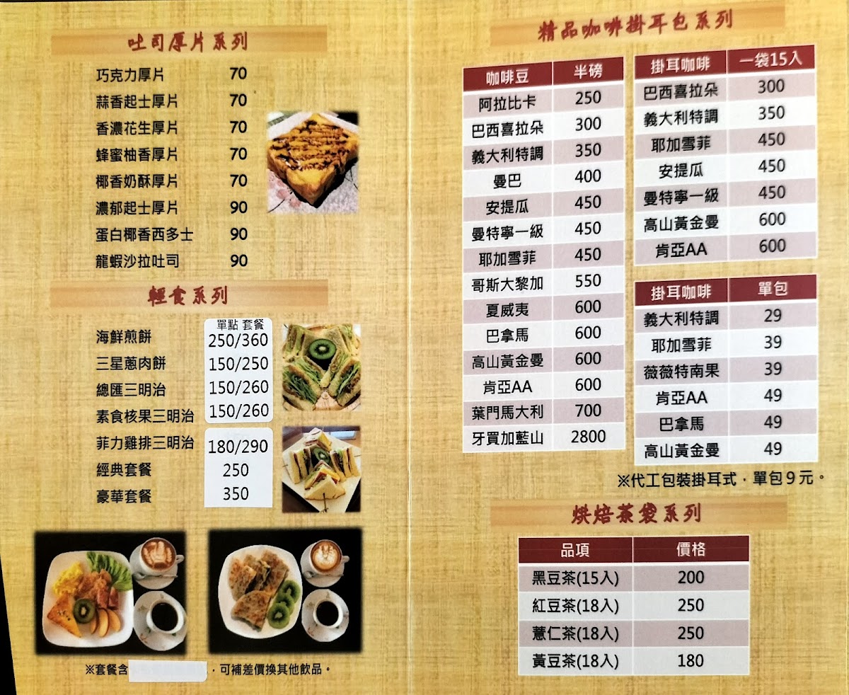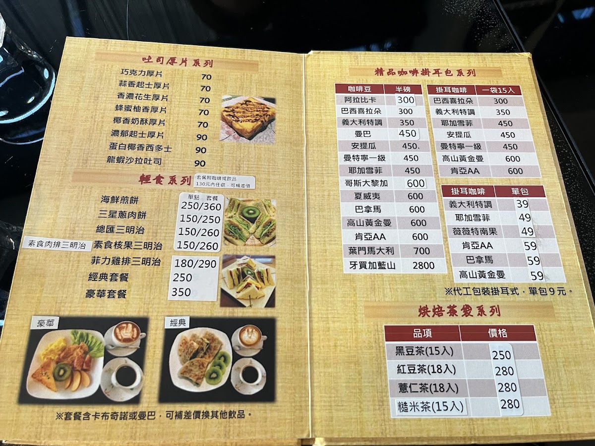 Guests can indulge in an array of delectable dishes, from the fresh 菲力雞排三明治 and 三星蔥肉餅 to delightful beverages like the smooth 巴拿馬卡門莊園 coffee and exquisite homemade 馬卡龍.